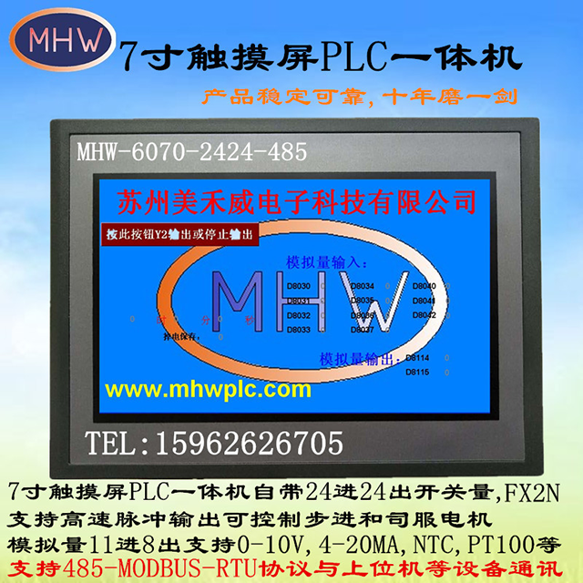 MHW-6070触摸屏plc一体机 - 7寸触摸屏PLC一体机 - 触摸屏PLC一体机 - 产品展示 - 苏州美禾威电子科技有限公司